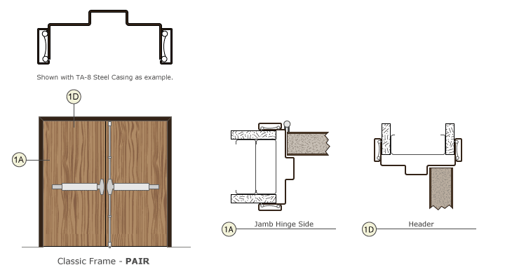 Note: The available jamb depths and door weights listed here apply to the Classic Frame in general. Some limitations may apply when looking at specific information. For example, a communicating frame must have a larger minimum jamb depth than listed here.