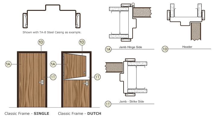 Note: The available jamb depths and door weights listed here apply to the Classic Frame in general. Some limitations may apply when looking at specific information. For example, a communicating frame must have a larger minimum jamb depth than listed here.