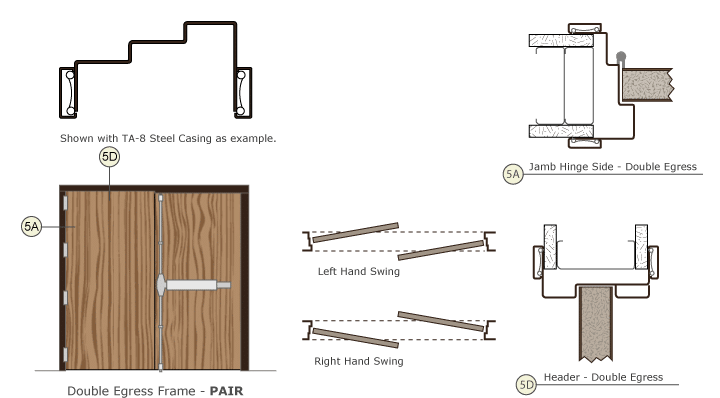 Our DE-Series Double Egress Frames will accommodate 1 3/4″ doors weighing up to 250 lbs each.