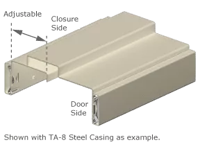 The prefinished steel A-Series Adjustable Frame is the perfect companion for the S-Series Standard Frame and C-Series Standard Frame. Use A-Series frame to prevent job site problems resulting from walls of varying wall thickness or non-standard Jamb depth. A-Series frames are also the solution where pre-hung assemblies are required.