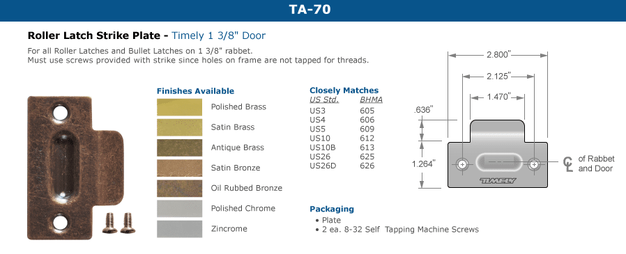 | Roller Latch | TA-70 | A | YES | YES | • | • | • | • | • | S-71 | • | ||