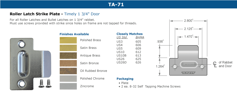 | Roller Latch | TA-71 | TA-2 | A | YES | YES | YES | YES | YES | • | • | • | S-73 |